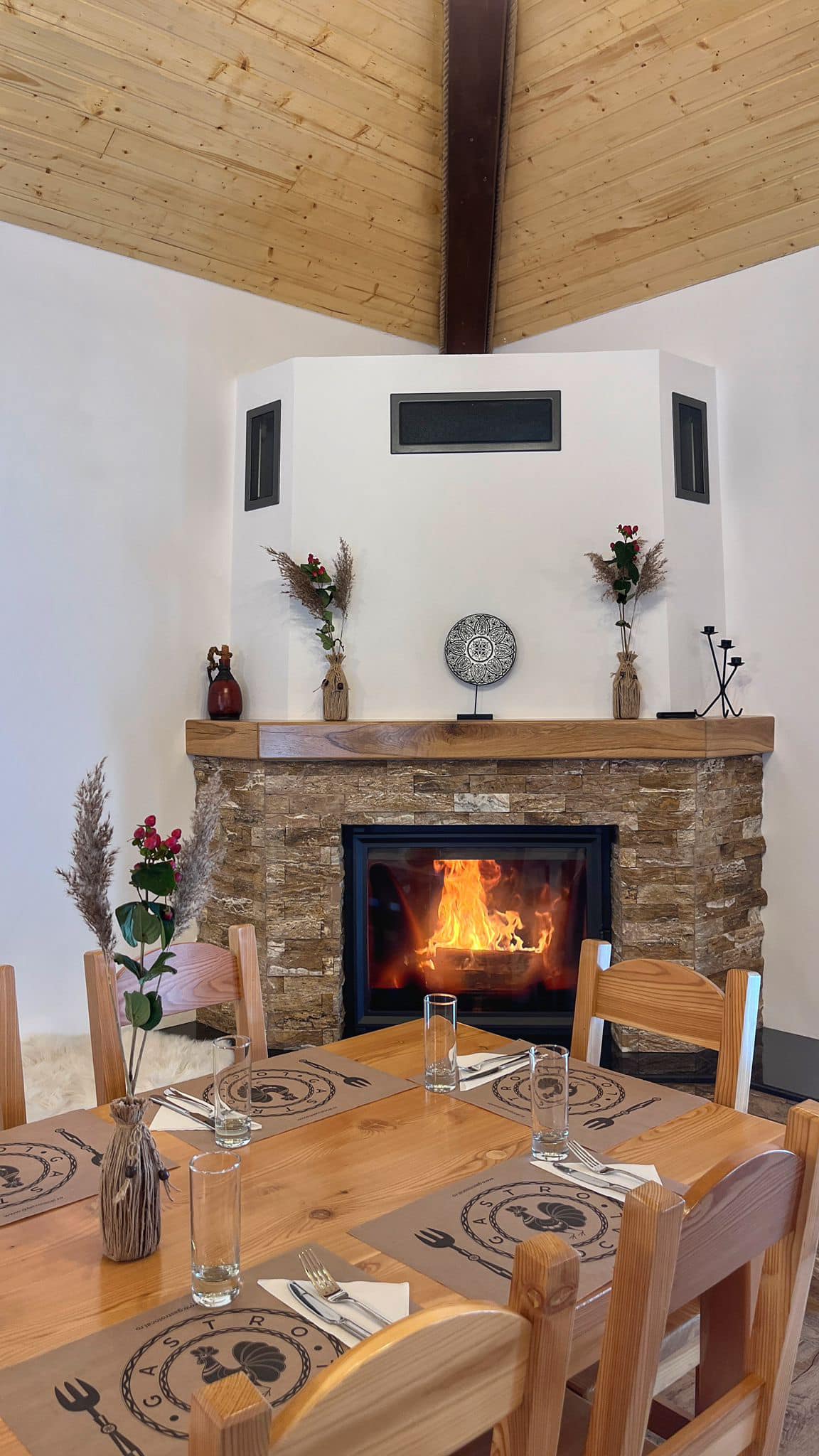 O altă recomandare de cazare este Pensiunea Alina. Are 5 camere duble și 1 apartament cu băi proprii și o sală de mese tare frumos amenajată, cu șemineu. Aici este și punct gastro, așa că puteți bifa cazarea&masa într-un singur loc. Ambele locații acceptă și vouchere de vacanță.