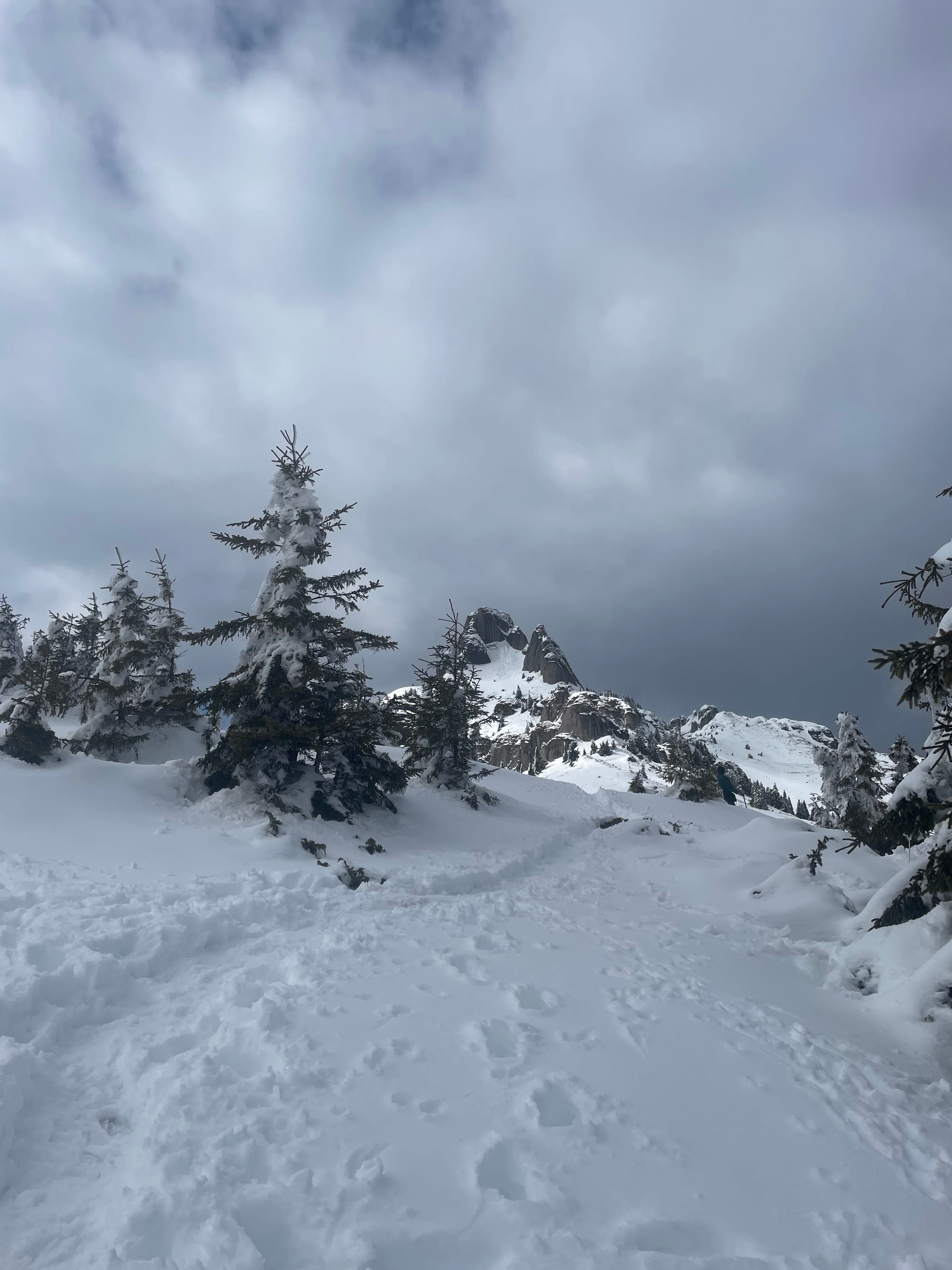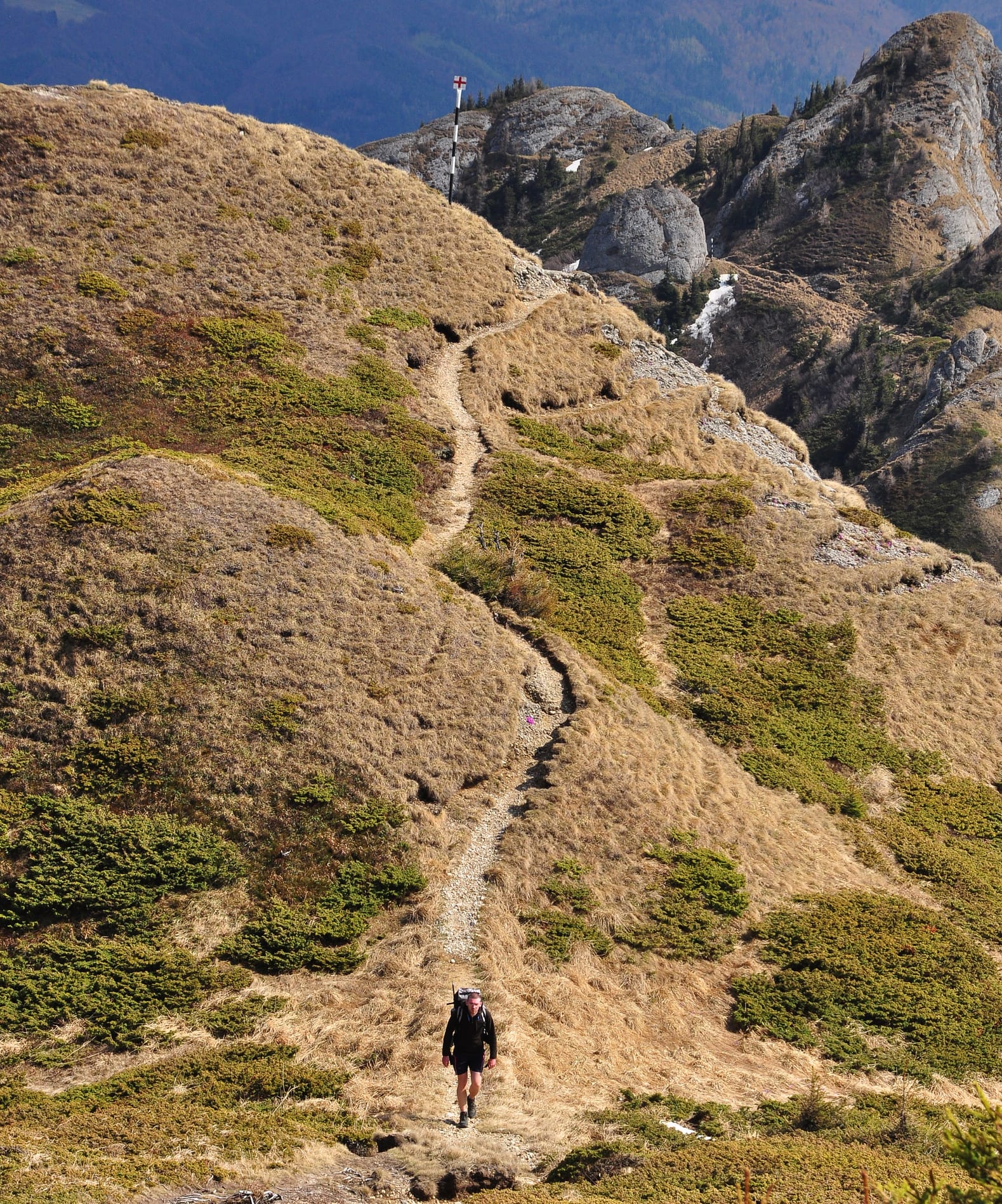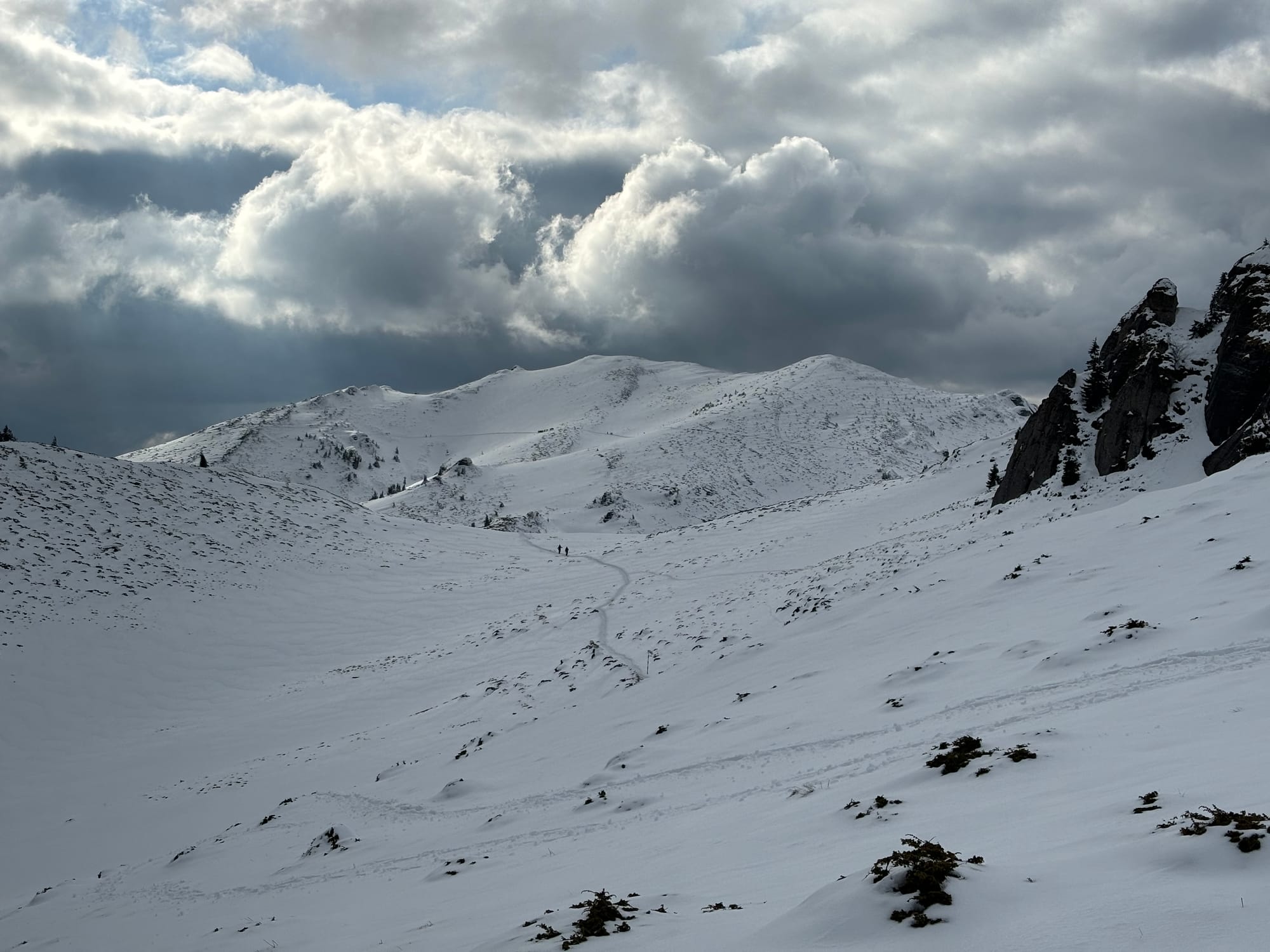 Noi am prins puțină gheață și zăpadă, deși este deja mijlocul lunii martie, așa că am simțit lipsa gheruțelor și a parazăpezilor. Cu toate acestea, ne-am descurcat, mergând cu atenție și folosindu-ne de bețe. Peisajul de-a lungul traseului este unul dintre cele mai frumoase pe care ți le poate oferi acoperișul țării!